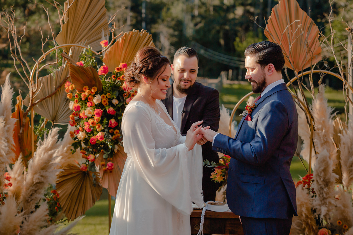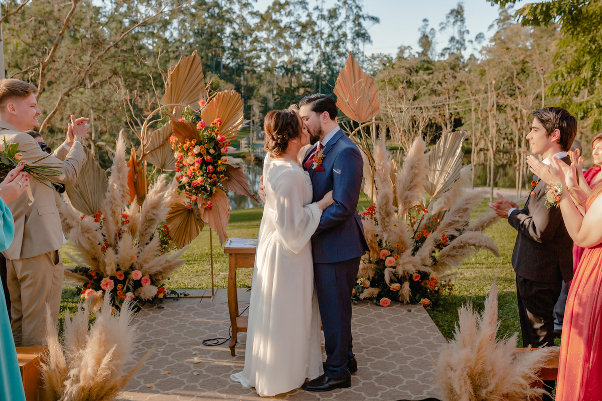 Então eles selaram esse amor com uma cerimônia leve, votos sinceros e cheios de desejo de uma vida toda juntos, o Sim tão esperado e com um beijo apaixonado.