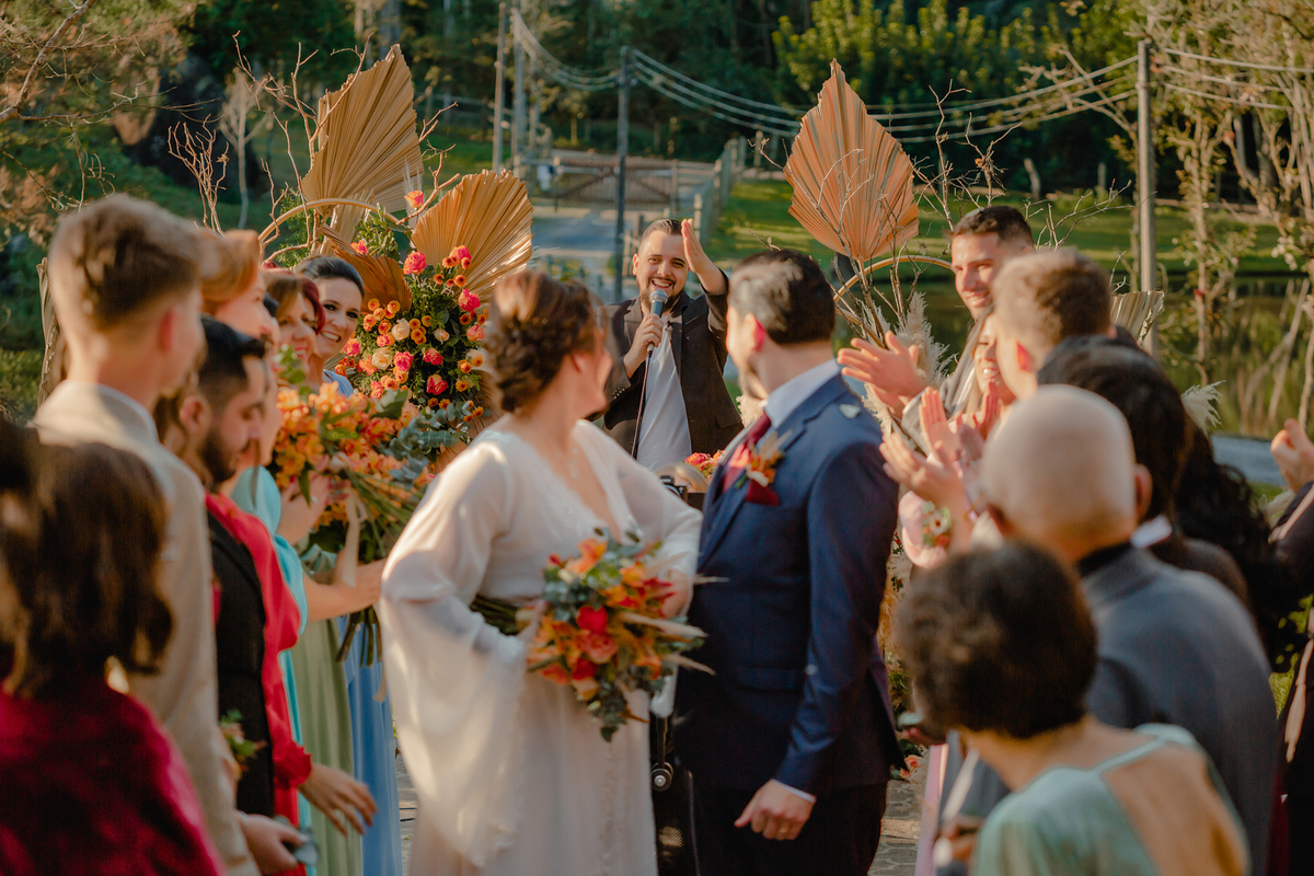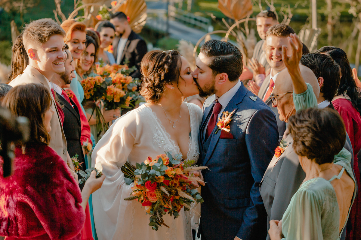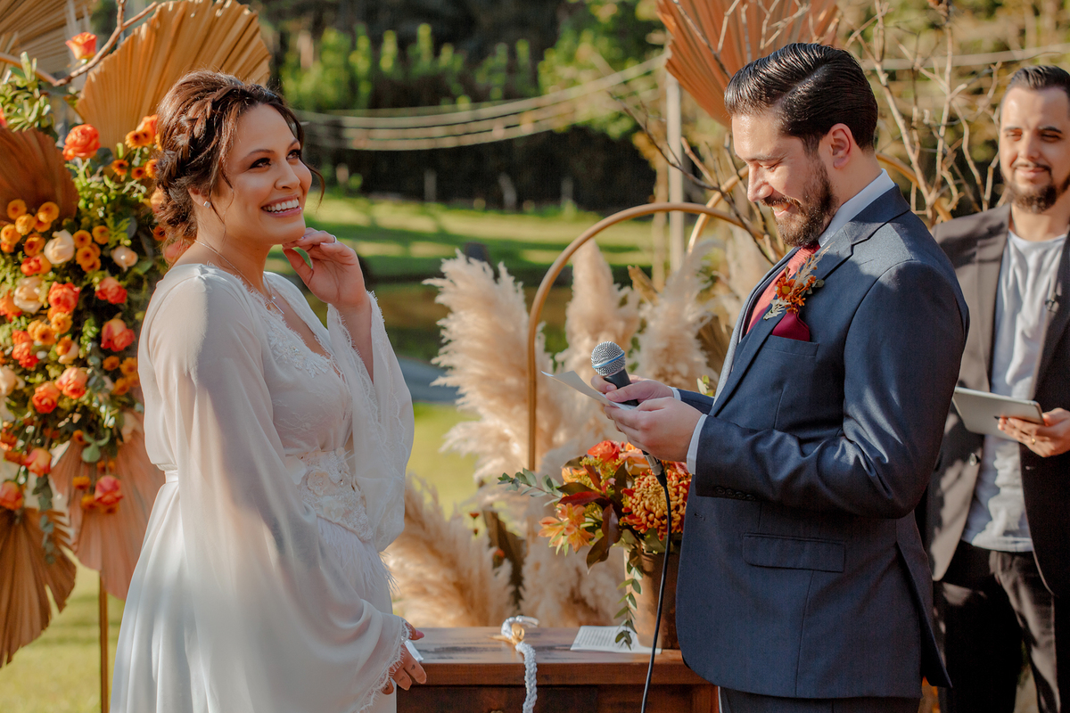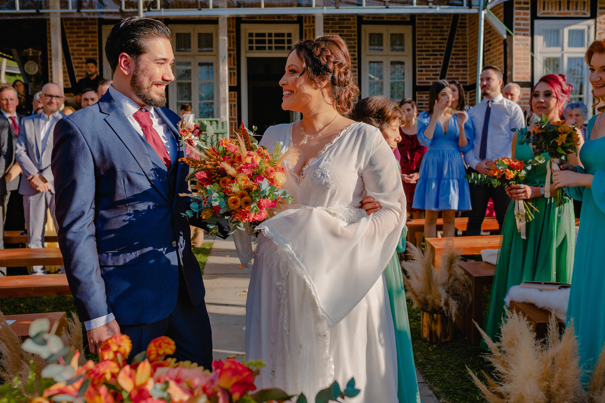 Elas estão nos convidados, nas flores escolhidas, nos acessórios da noiva, nos abraços e também naqueles olhares que dizem muito mais que as palavras.