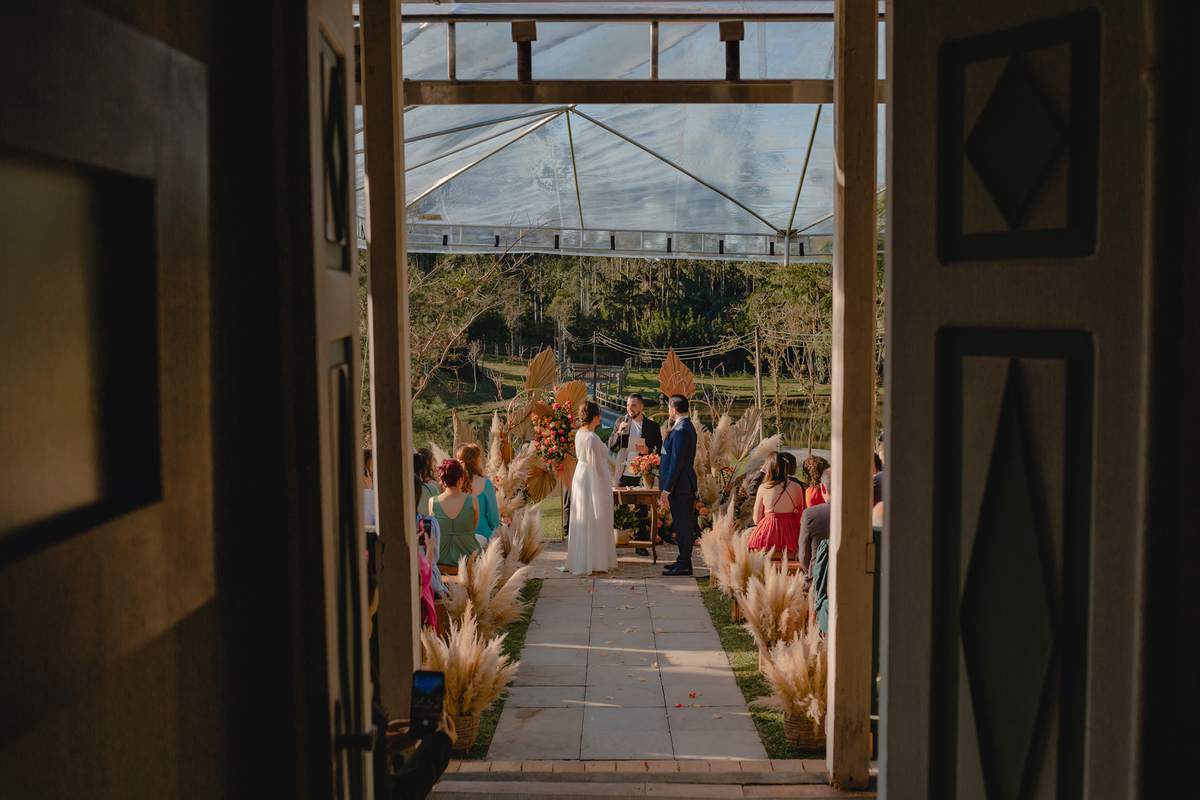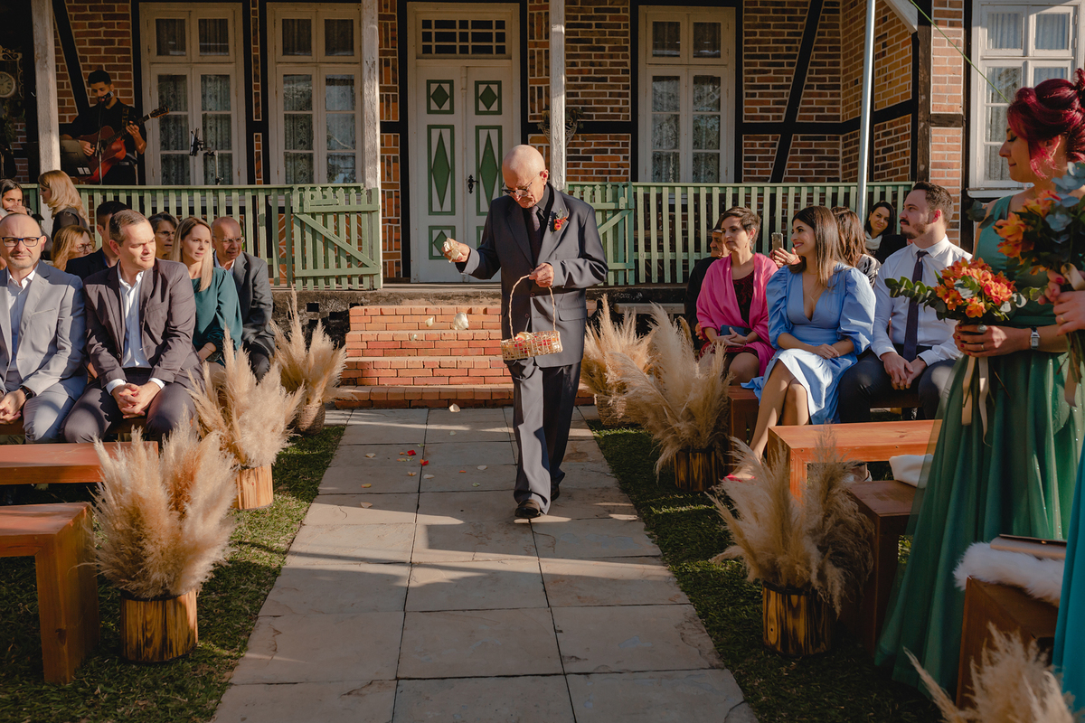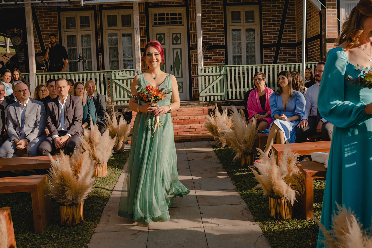 A Gabriela e o Gabriel se casaram em um dia lindo de sol no Sítio Vale dos Sonhos em Blumenau na Rota Enxaimel, um local que nos surpreendeu com a sua beleza e charme.