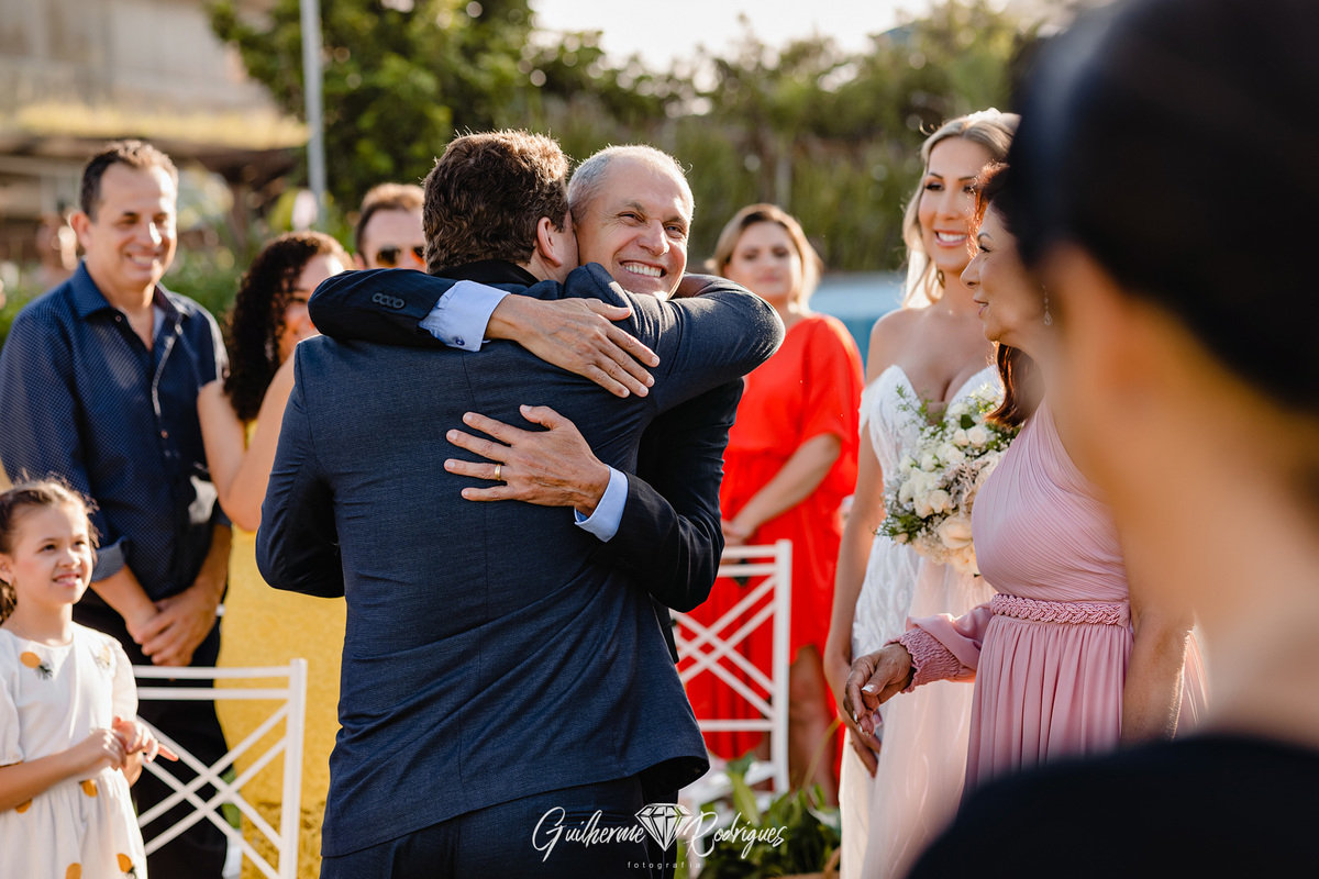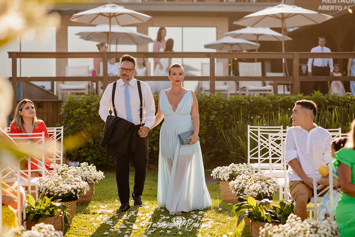 Eles escolheram realizar a cerimônia e a recepção na Villa Sonali em Balneário Camboriú, um local à beira-mar na Praia do Estaleirinho.