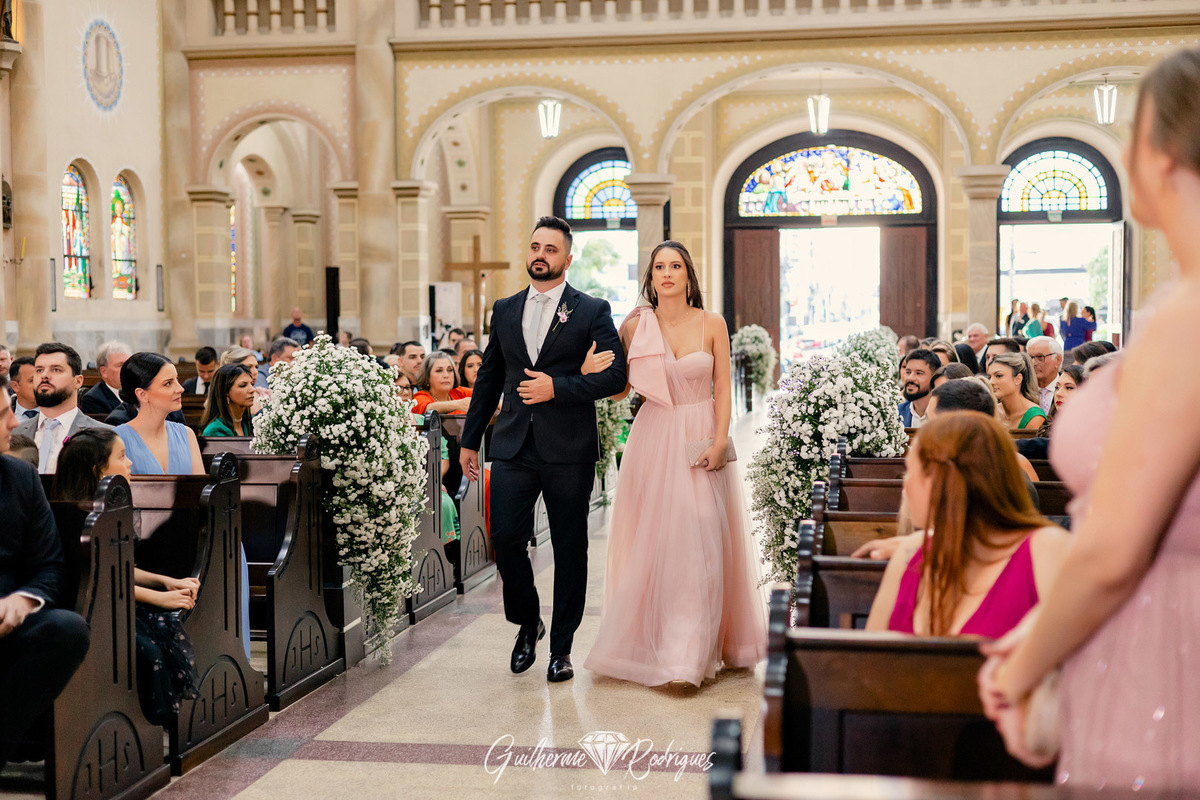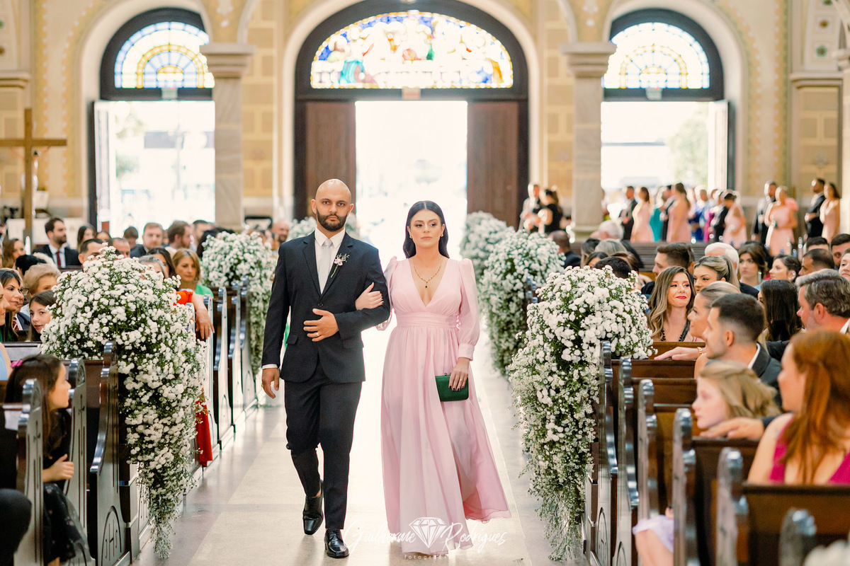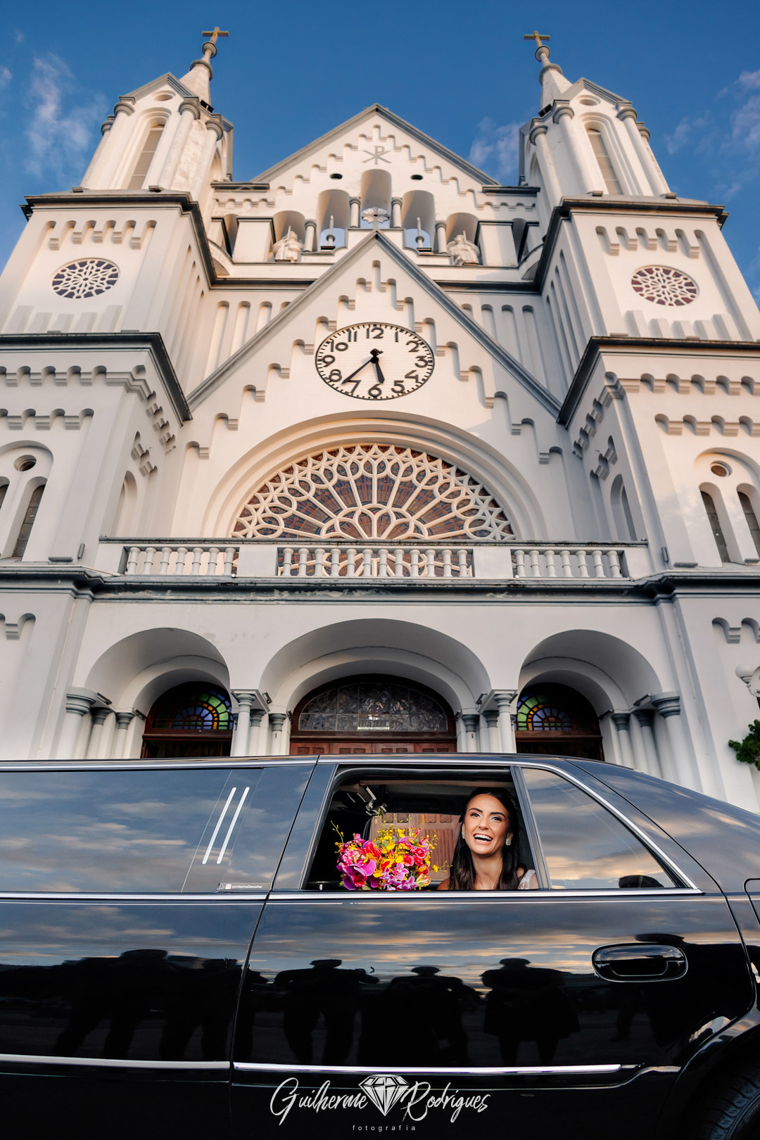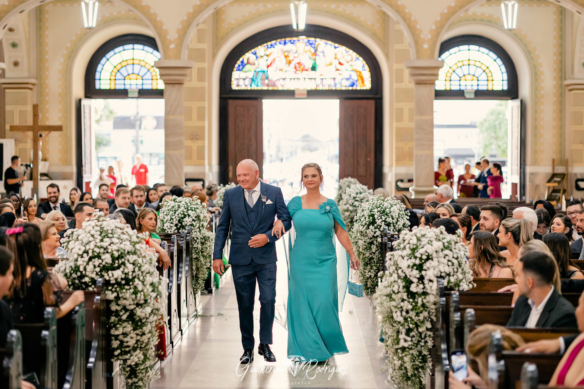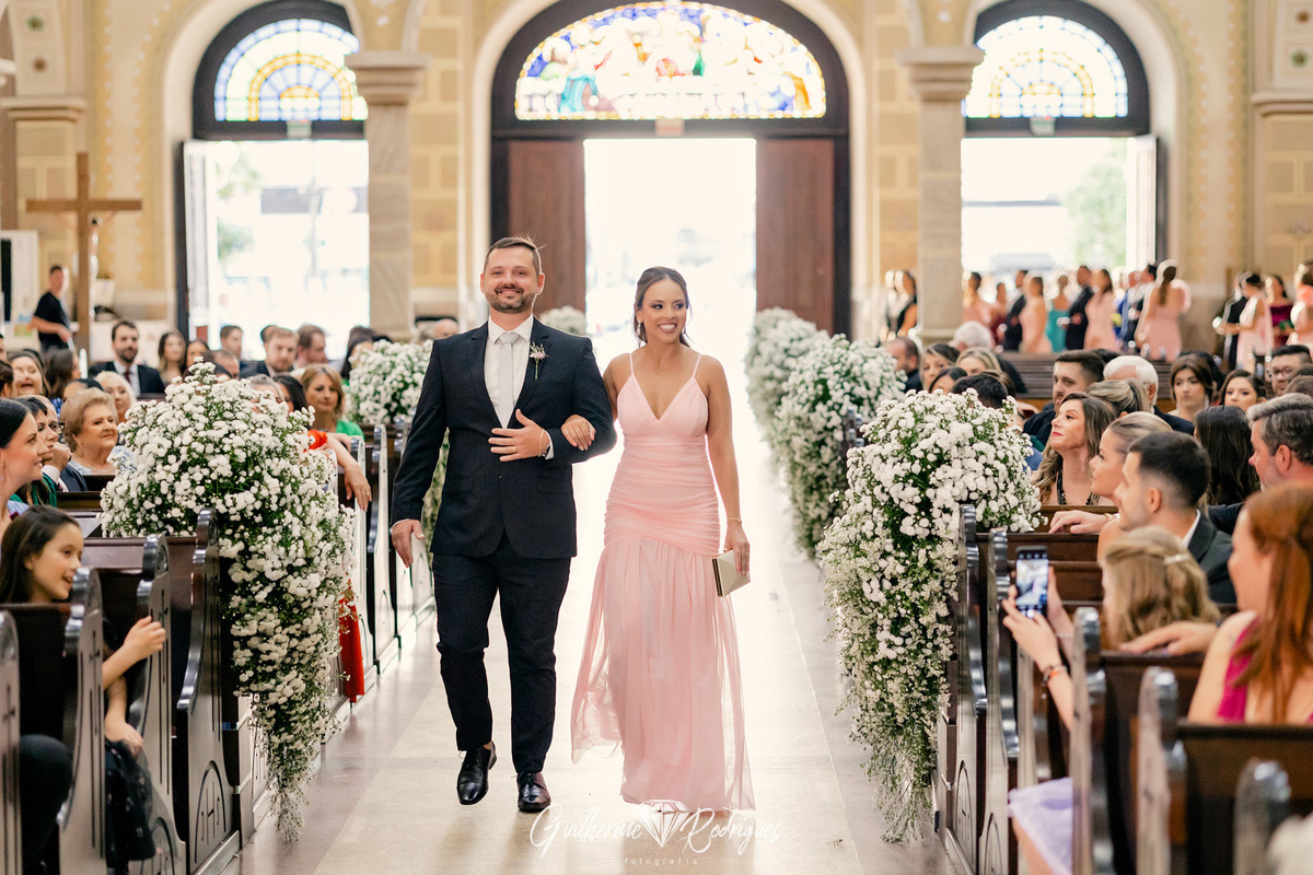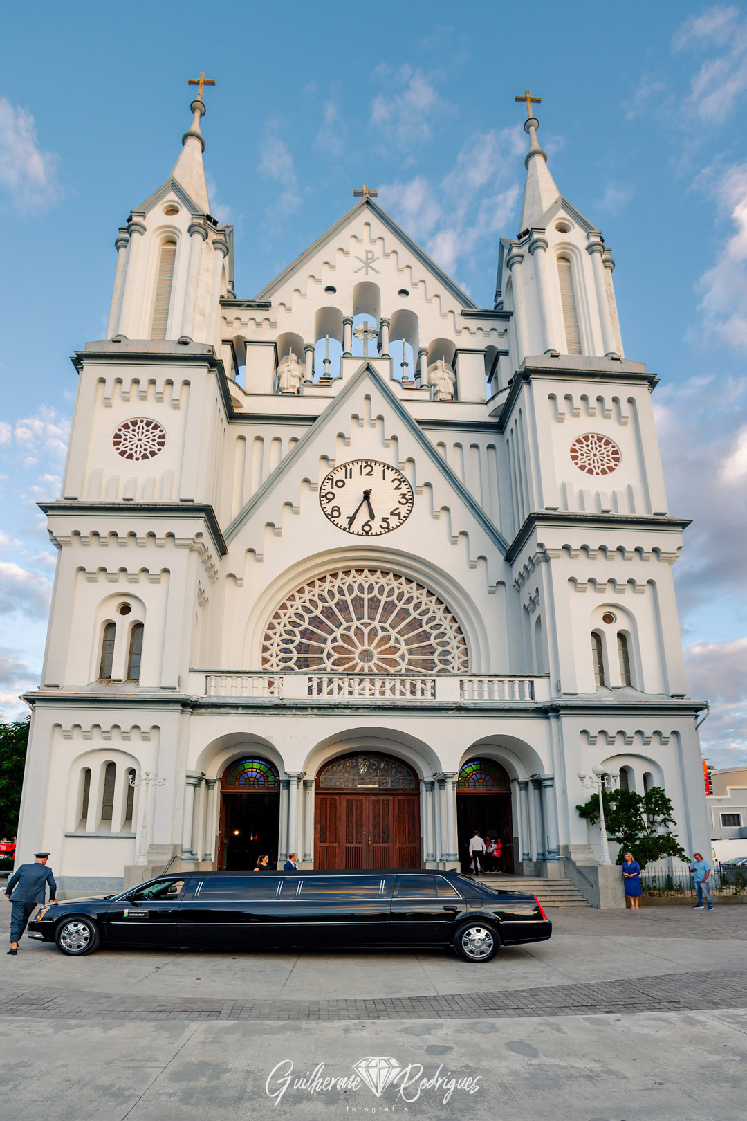 A cerimônia de casamento da Dai e do Paulo aconteceu na Igreja Matriz de Itajaí e os convidados foram recepcionados no Clube Itamirim.