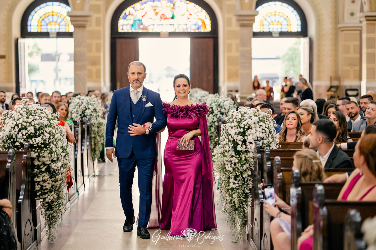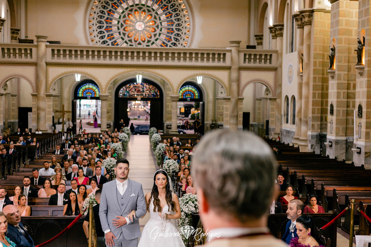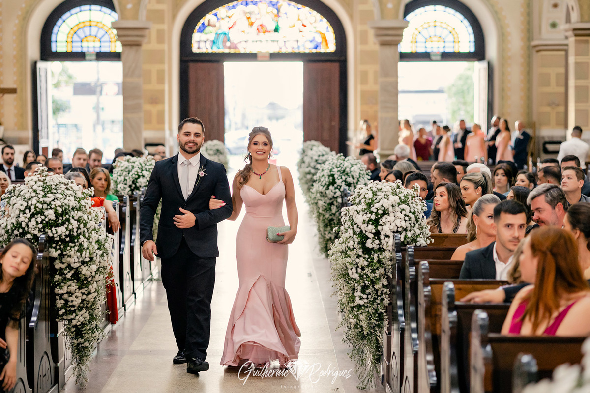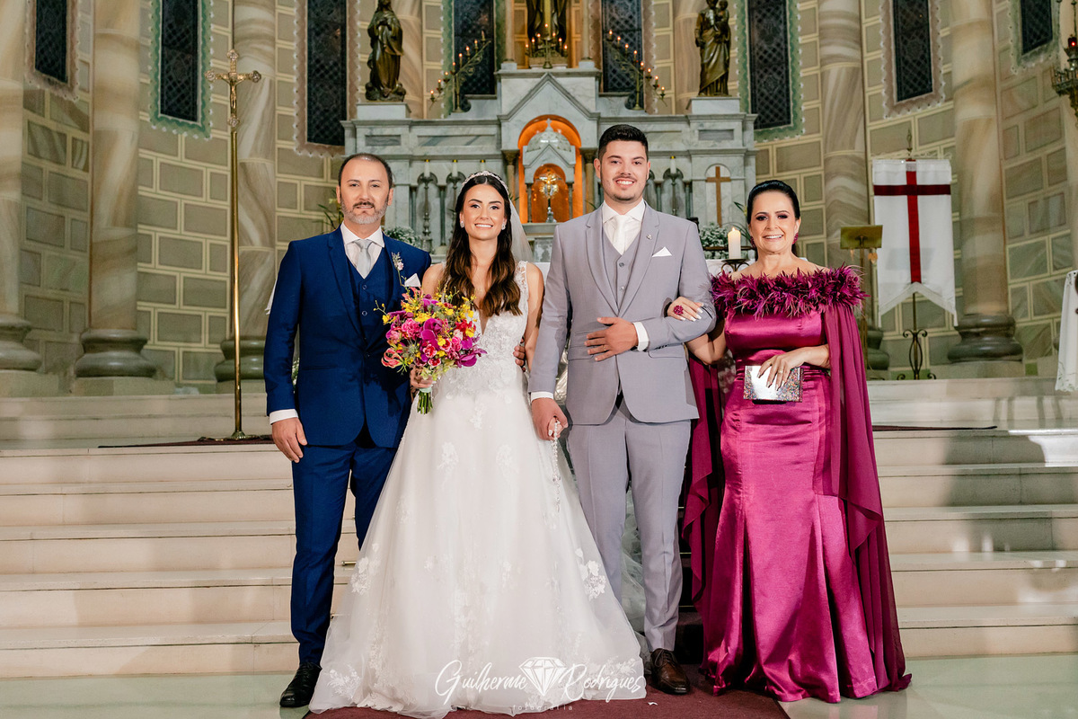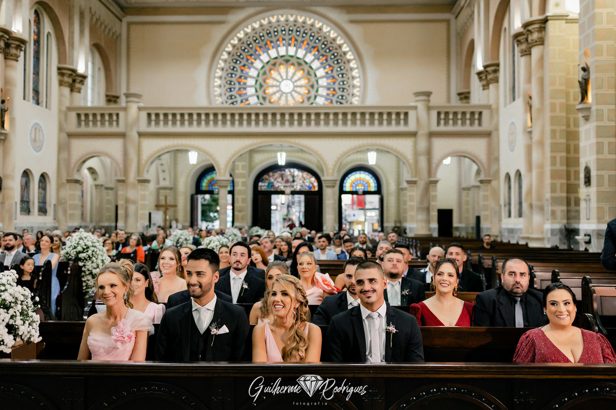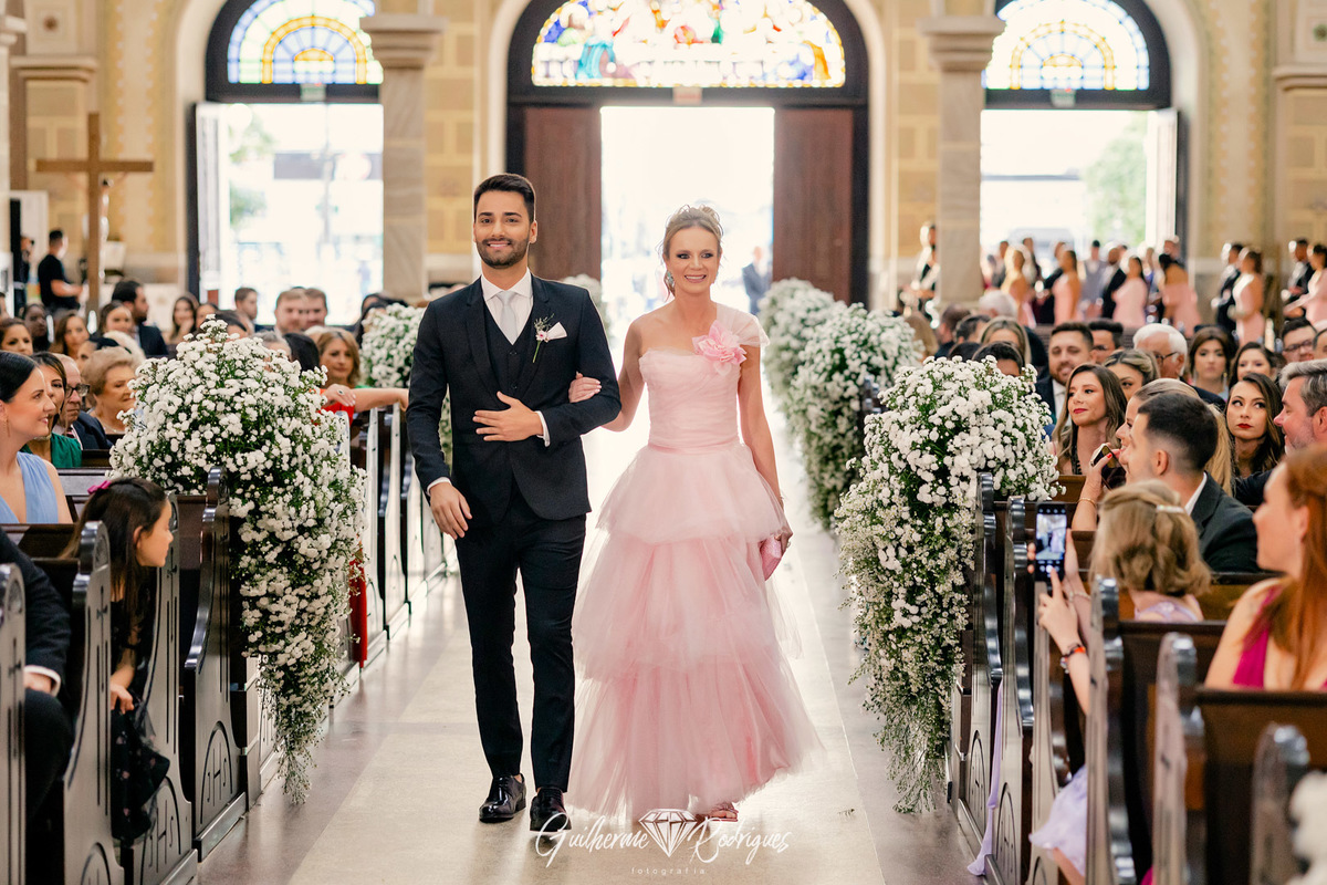 A cerimônia de casamento da Dai e do Paulo aconteceu na Igreja Matriz de Itajaí e os convidados foram recepcionados no Clube Itamirim.
