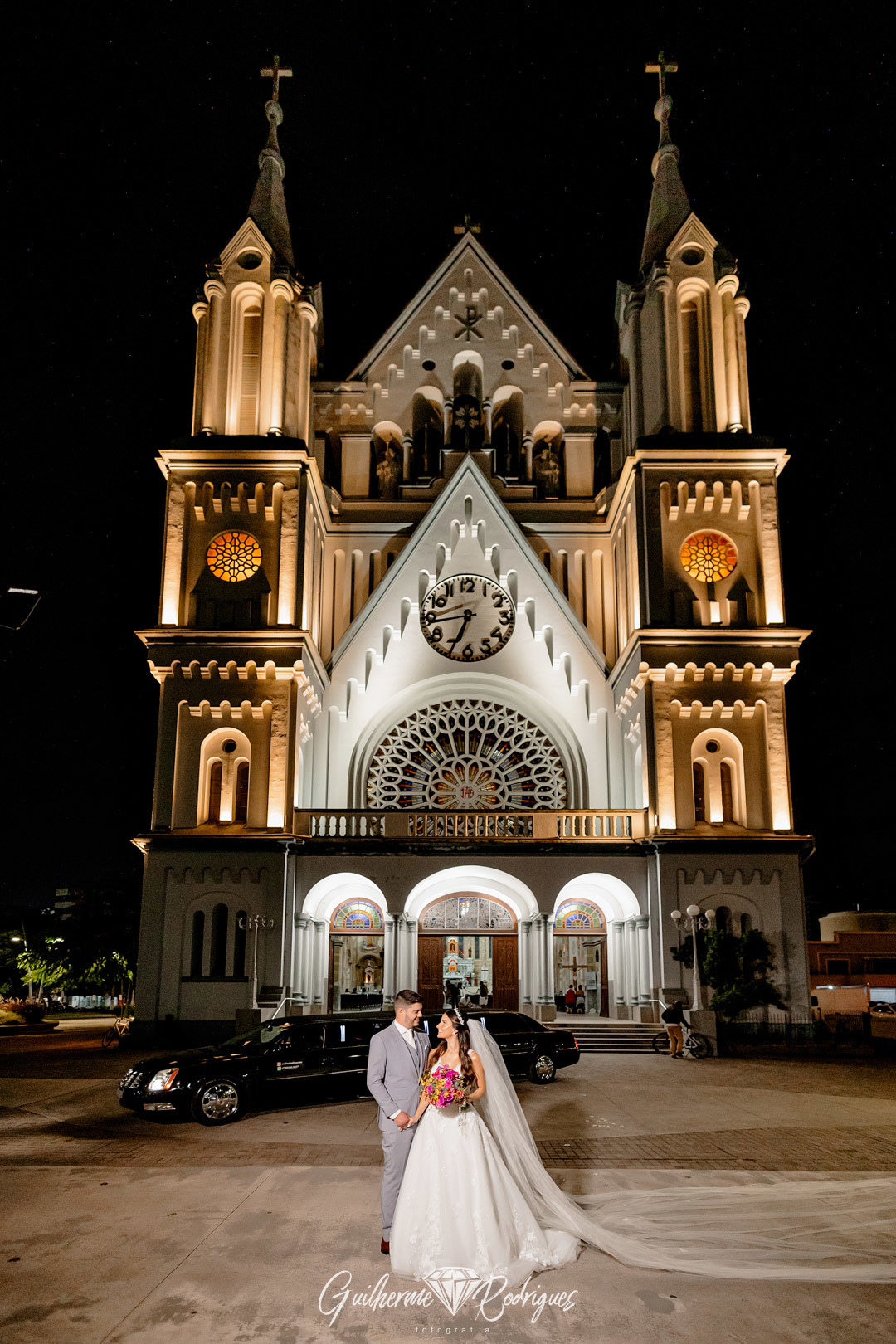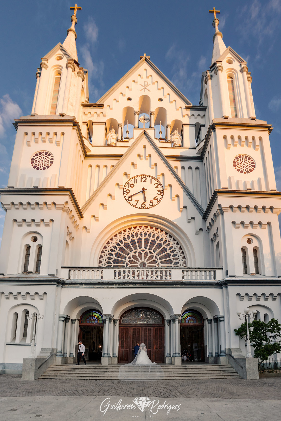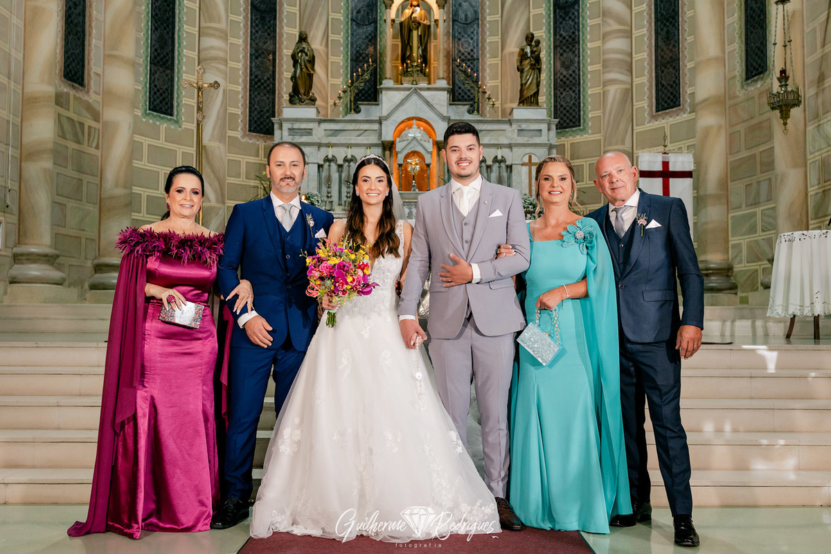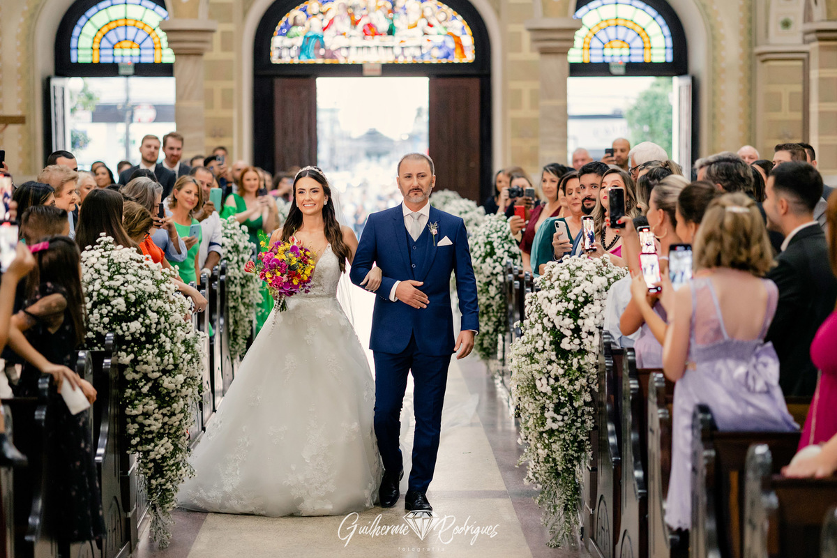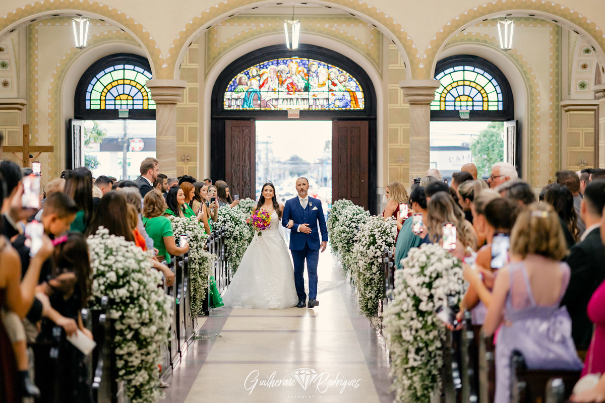 A cerimônia de casamento da Dai e do Paulo aconteceu na Igreja Matriz de Itajaí e os convidados foram recepcionados no Clube Itamirim.