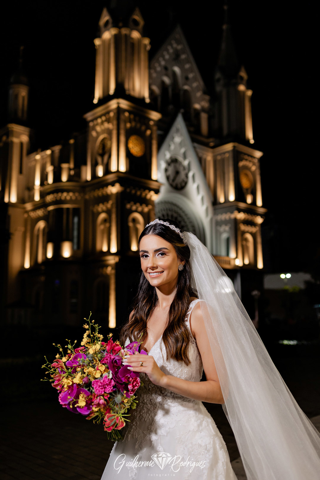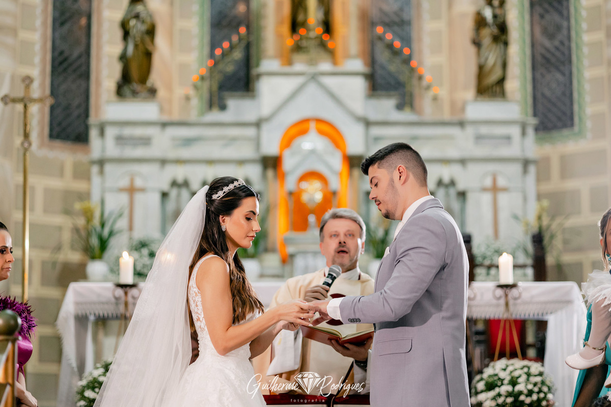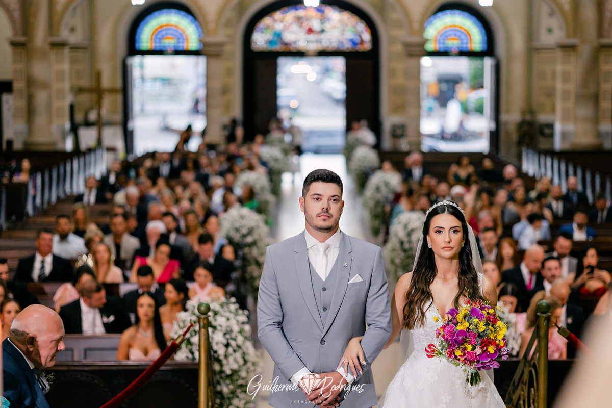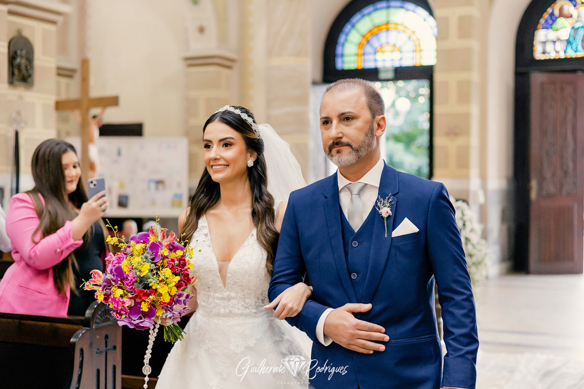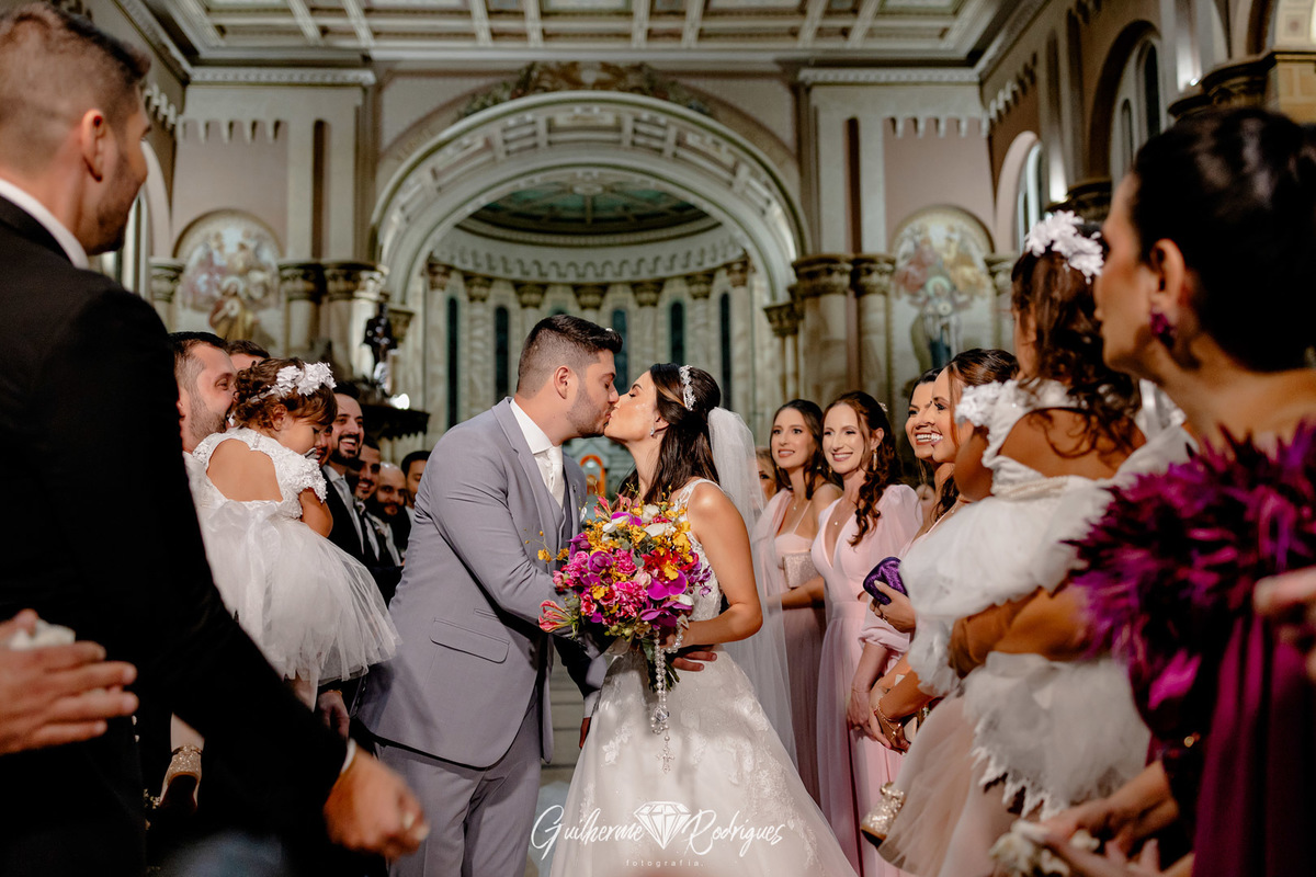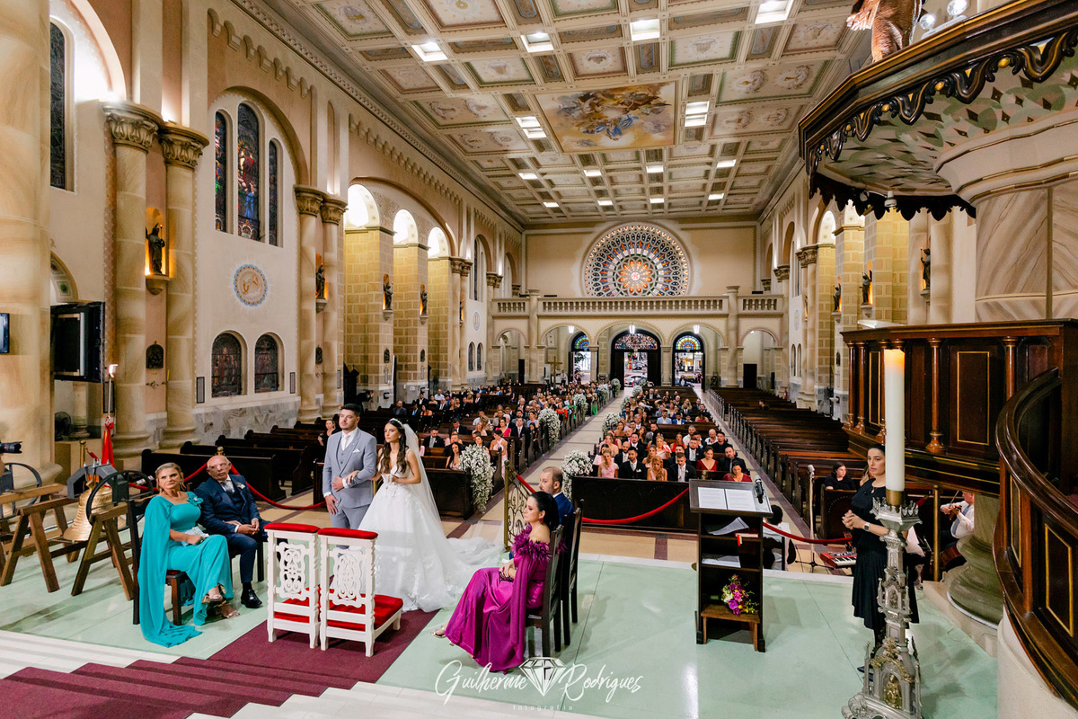 A cerimônia de casamento da Dai e do Paulo aconteceu na Igreja Matriz de Itajaí e os convidados foram recepcionados no Clube Itamirim.