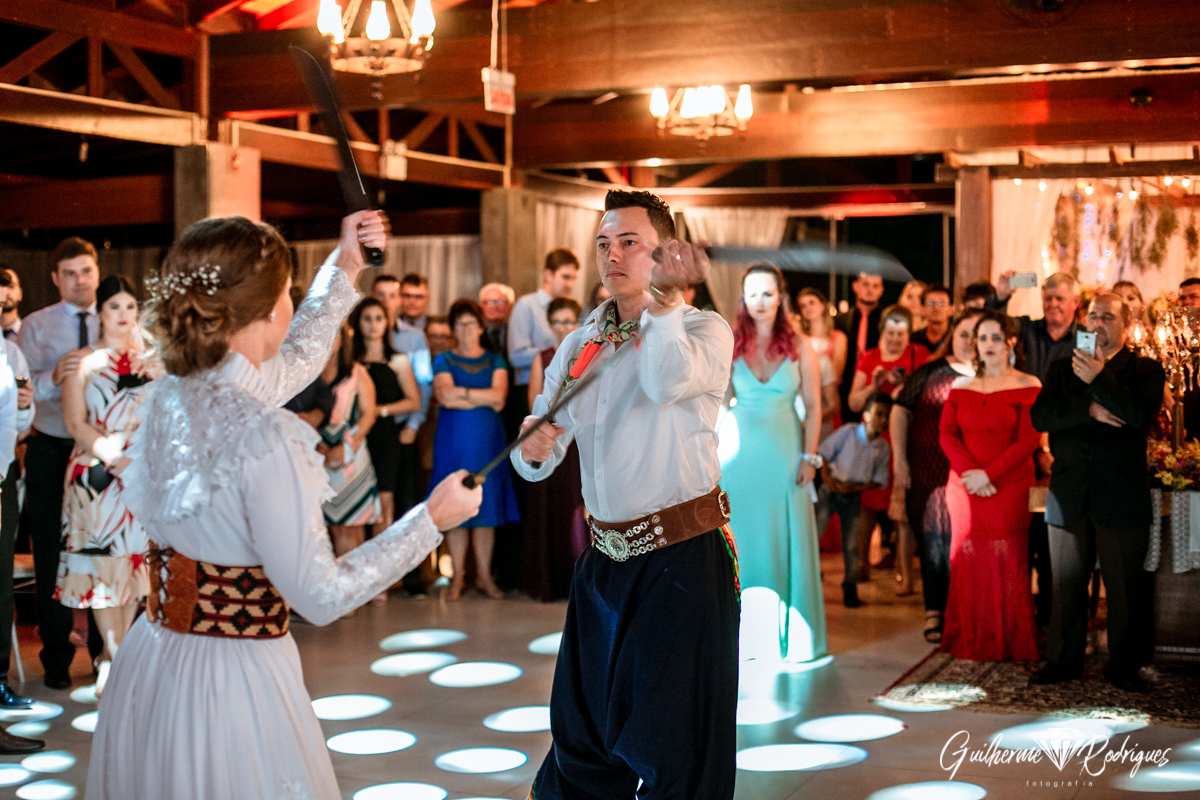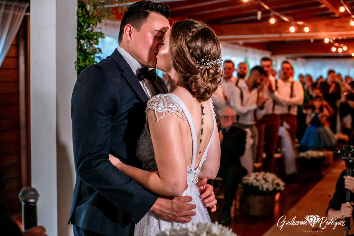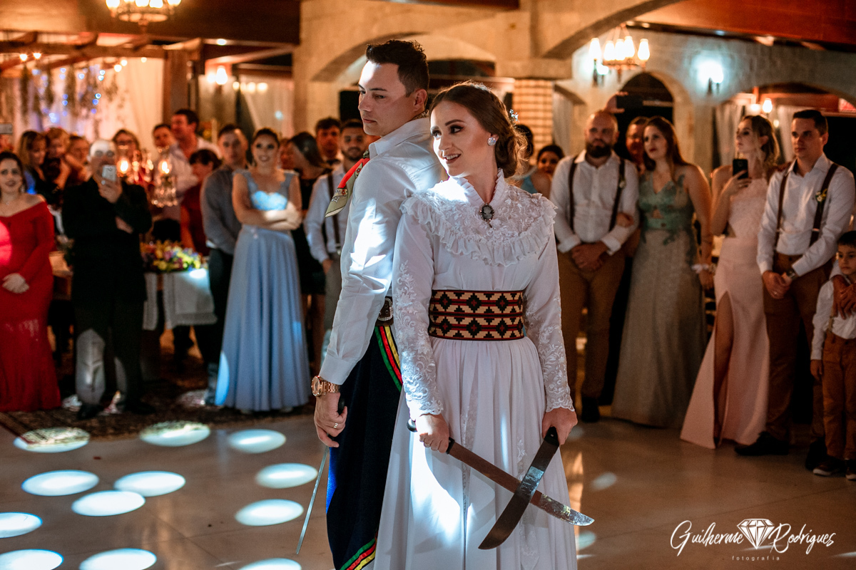 A Âmy e o Rafa moram na cidade de Penha/SC e escolheram para a cerimônia e festa do casamento deles o Portal das Pedras, em Camboriú/SC. Por trás de um casamento, sempre tem muita história, desde como os noivos se conheceram até como chegaram a esse dia único, e nós amamos isso. Aqui a história começa quando o vestido é feito pela noiva e por sua mãe, cada ponto foi dado com muito amor e carinho, com muito significado para este dia. O dia do casamento tem que ter tudo a ver com os noivos, e assim foi o dia deles, desde a decoração até a valsa, quando eles trocaram a roupa do casamento para a roupa de prenda e peão e arrasaram ao dançar músicas da tradição gaúcha. Foi lindo de se ver!