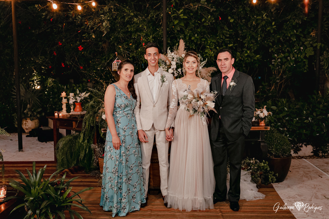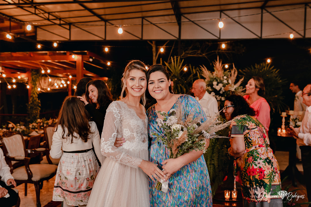 A cerimônia aconteceu ao ar livre, leve e cheia de emoção, em um espaço verde que dava para ouvir até o canto dos passarinhos. Eles receberam a benção do vô do Gabriel e do pai da Gabriela e assim estavam casados! A decoração harmonizada com o local, uma mesa comunitária para os todos os convidados, incluindo os noivos, as velas e as luzes deixaram tudo ainda mais aconchegante. Bem, o que mais podemos dizer? O dia foi perfeito!