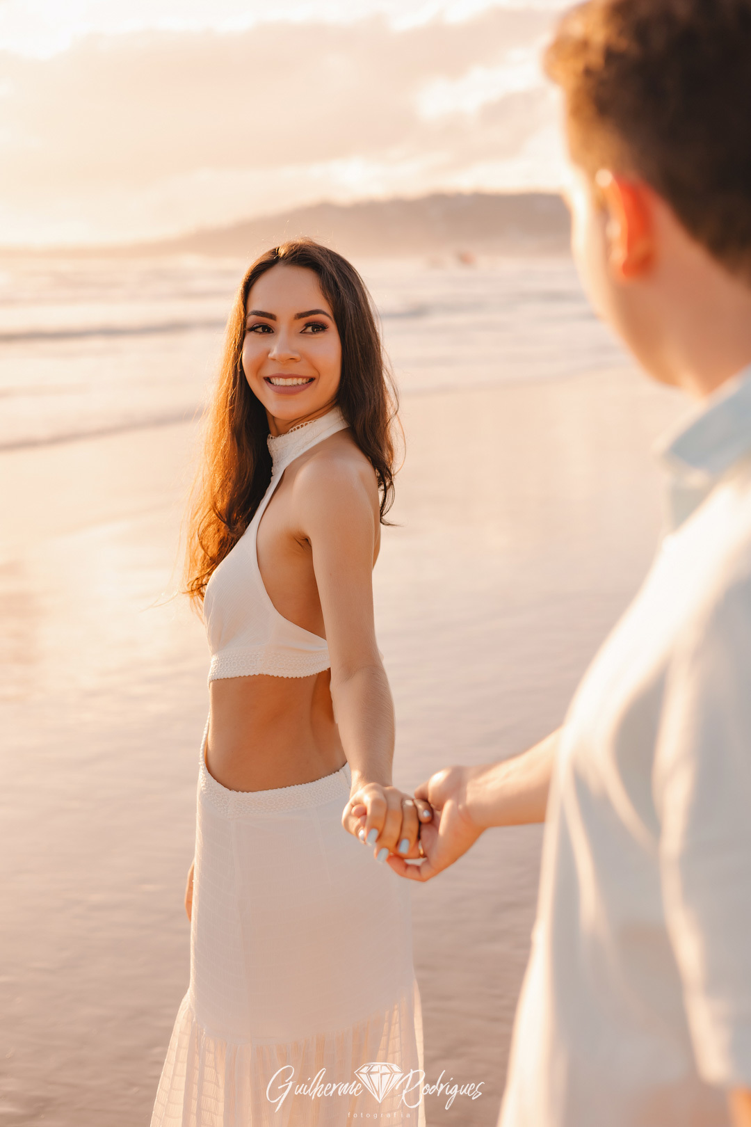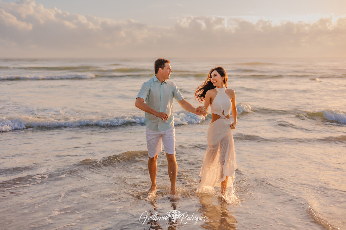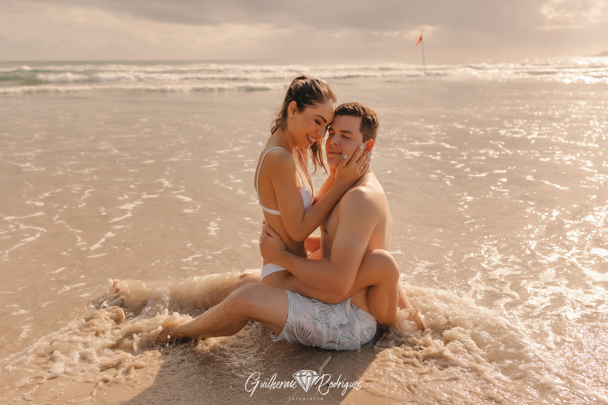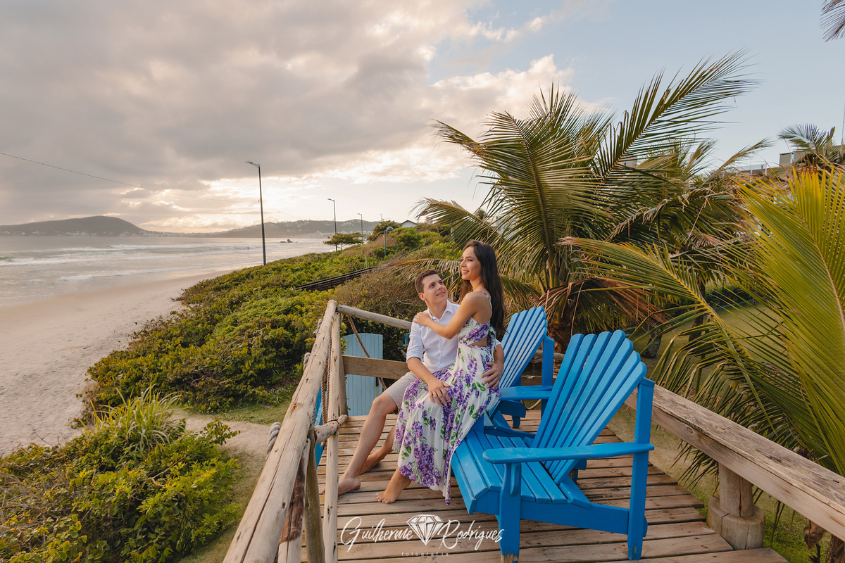 Fomos para a Praia de Bombas fotografar o ensaio pré-casamento desse casal incrível, em um amanhecer liiindo ♥