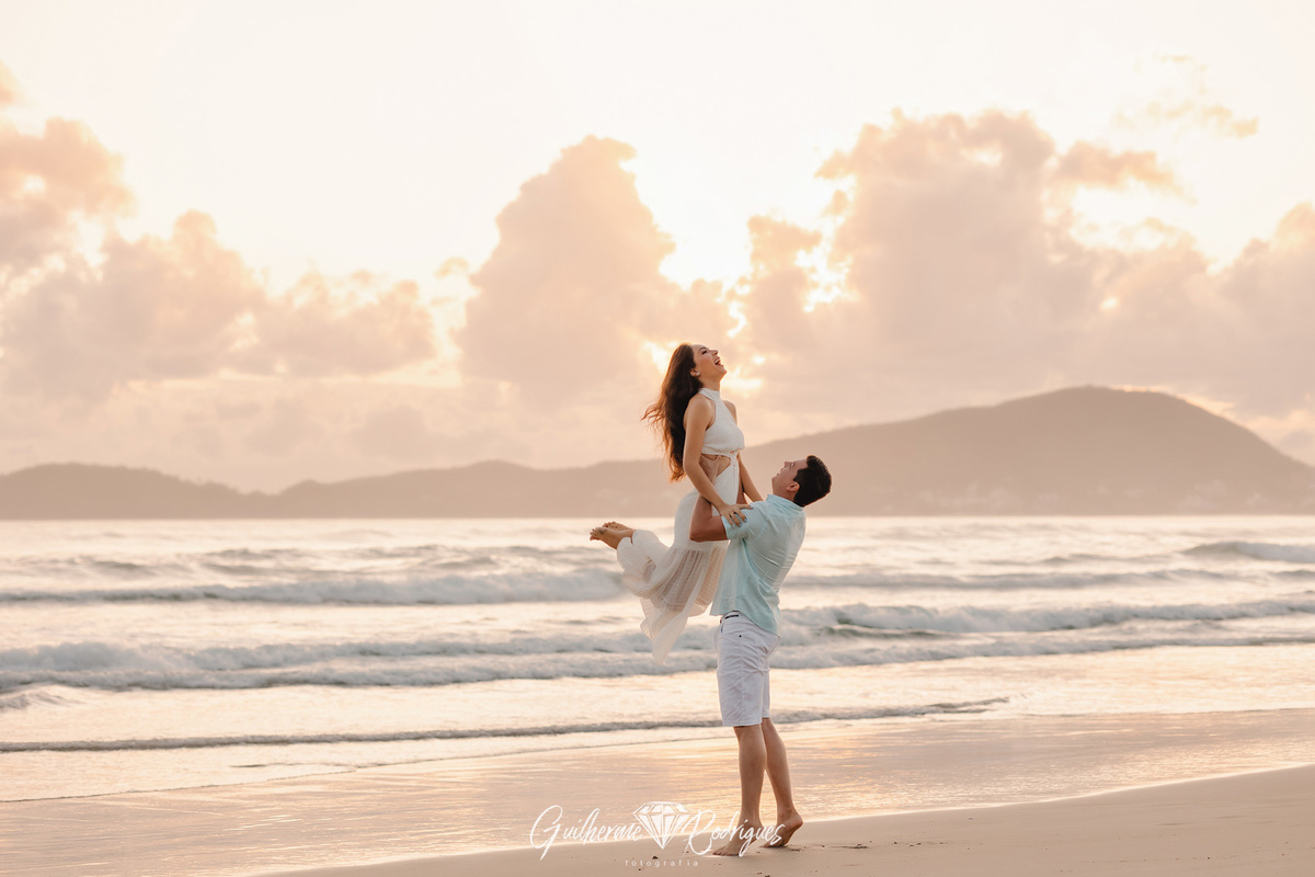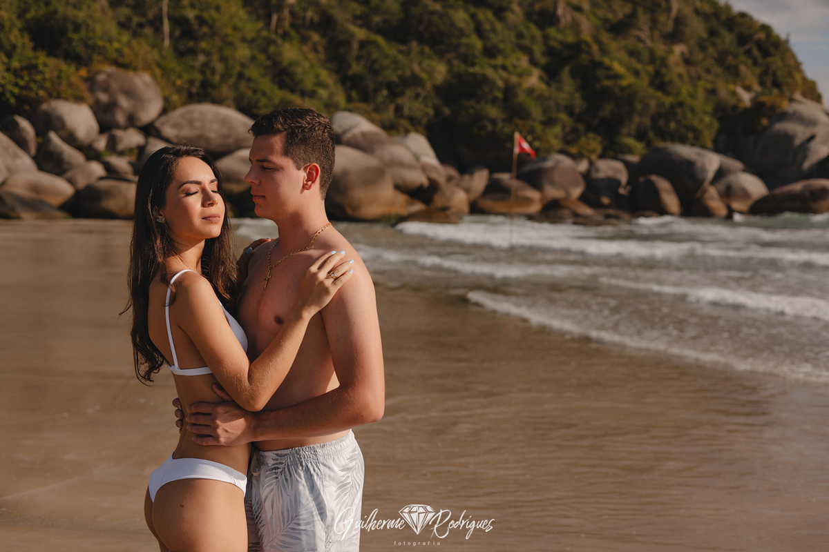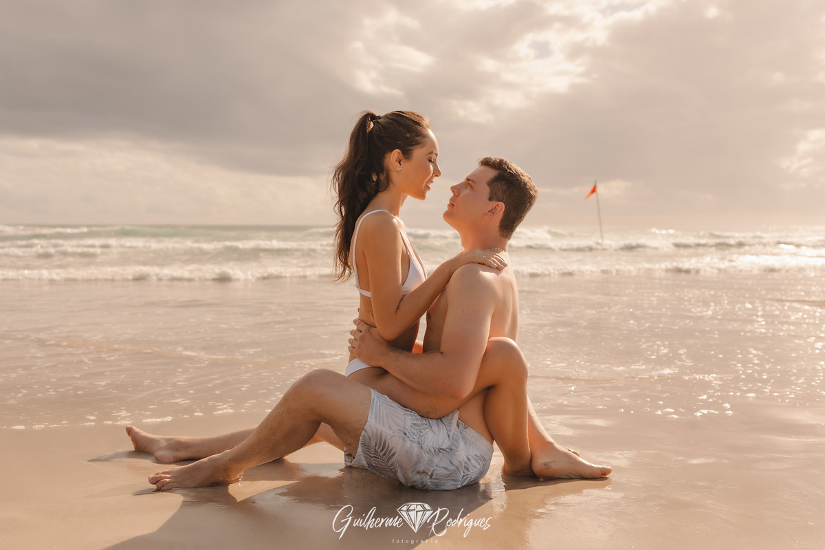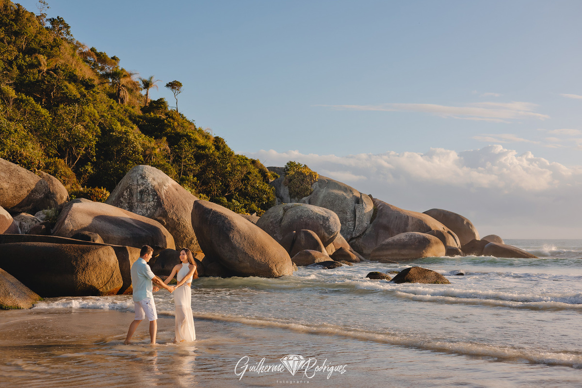 Fomos para a Praia de Bombas fotografar o ensaio pré-casamento desse casal incrível, em um amanhecer liiindo ♥