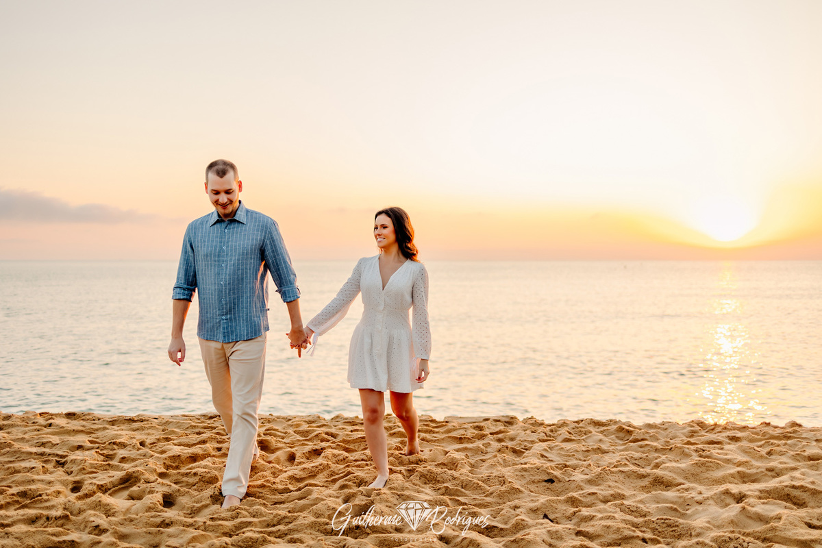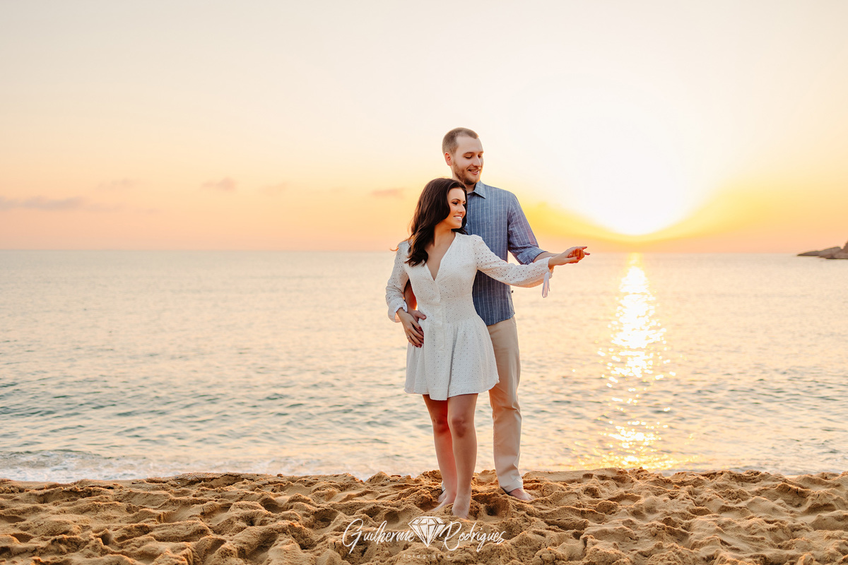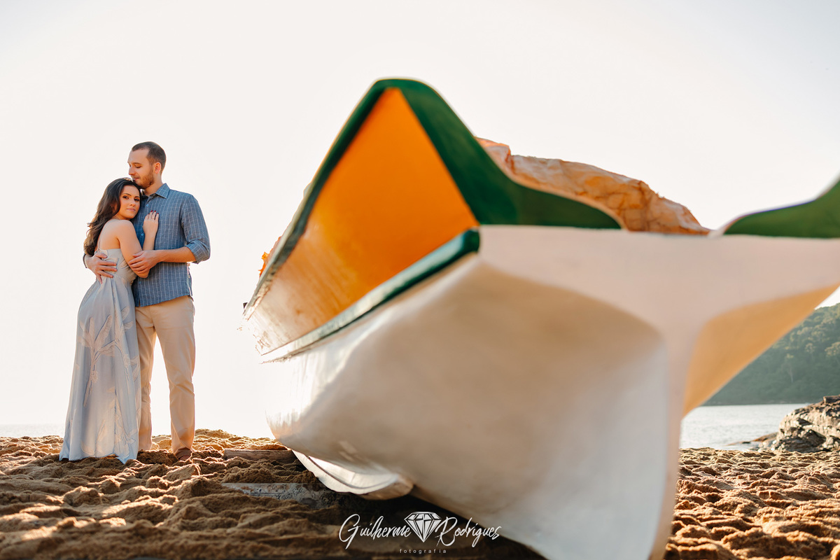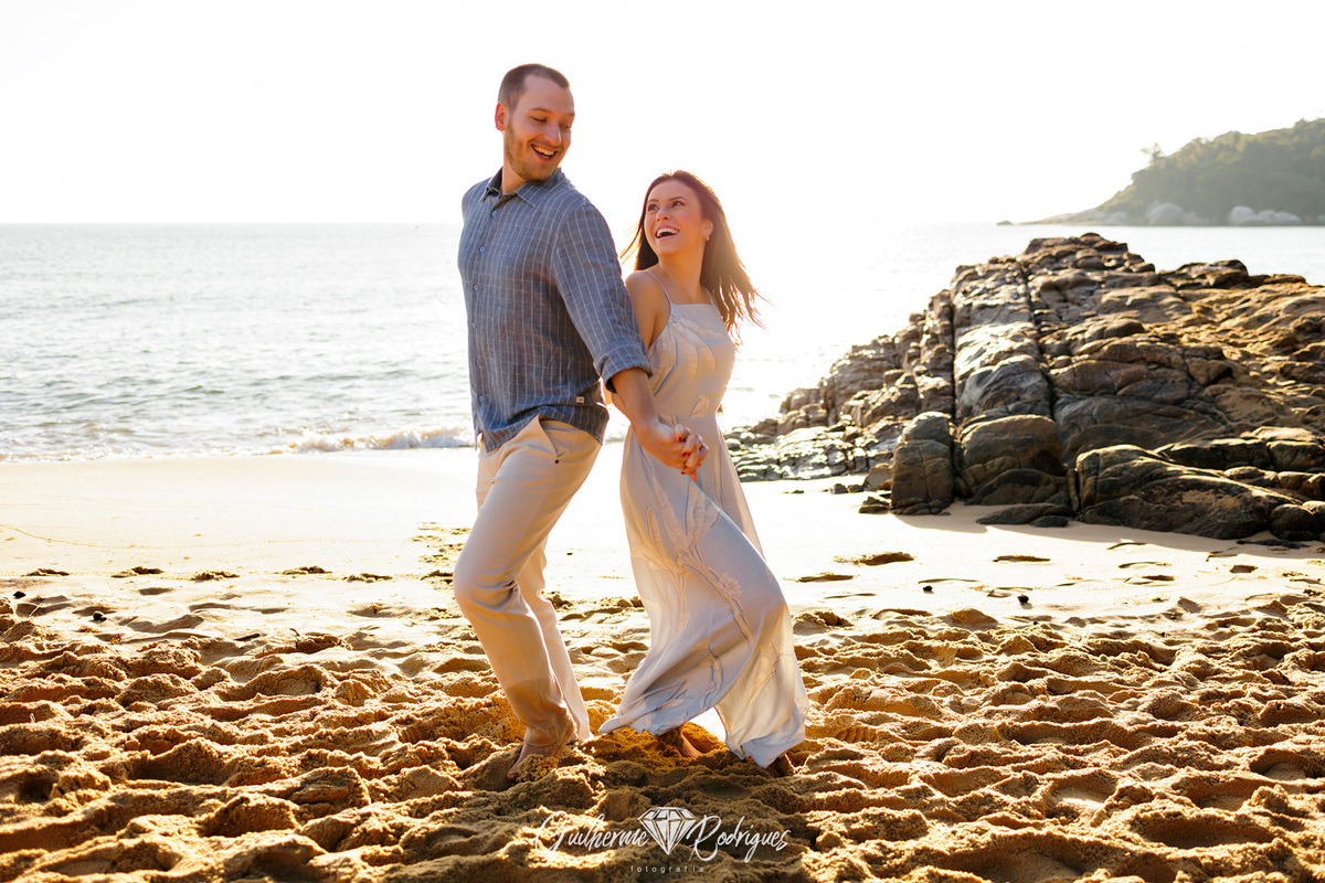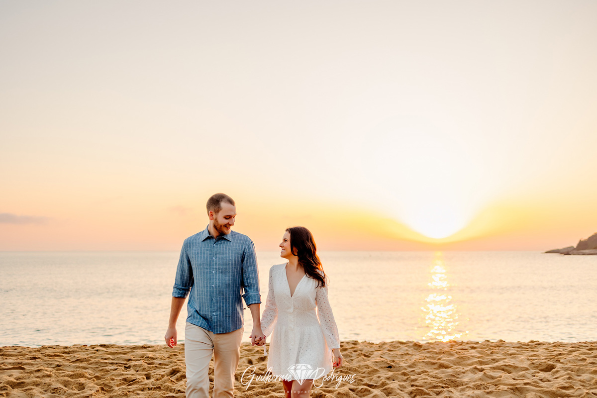 O cenário escolhido por eles tem uma significado importante para a história deles, pois foi na Praia de Taquaras que o Brenno pediu a Carol em casamento. Podemos imaginar as emoções que vem ao relembrar esse momento, e então ao nascer do sol, fotografamos esse casal tão querido ♥