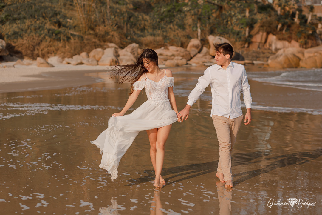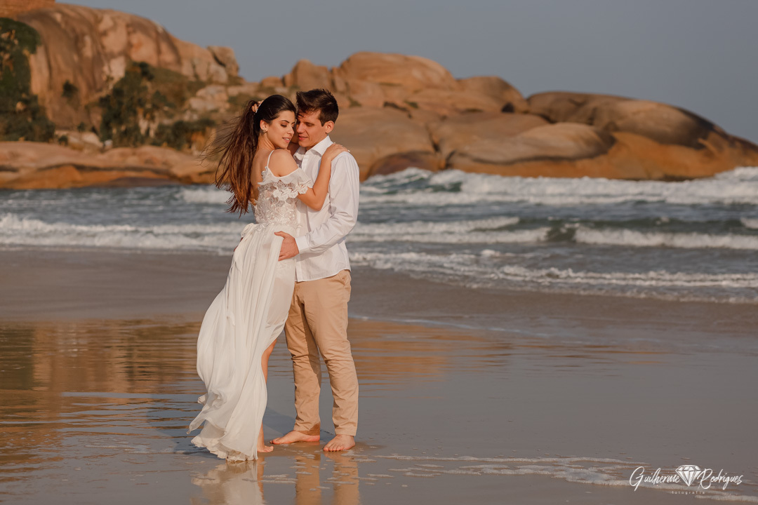 Fomos para Florianópolis, na Praia do Moçambique e depois seguimos para a Praia e Dunas da Joaquina, e apesar de todo vento, os noivos se divertiram e se dedicaram a aproveitar ao máximo e finalizamos ao por do sol na Ponte Hercílio Luz.