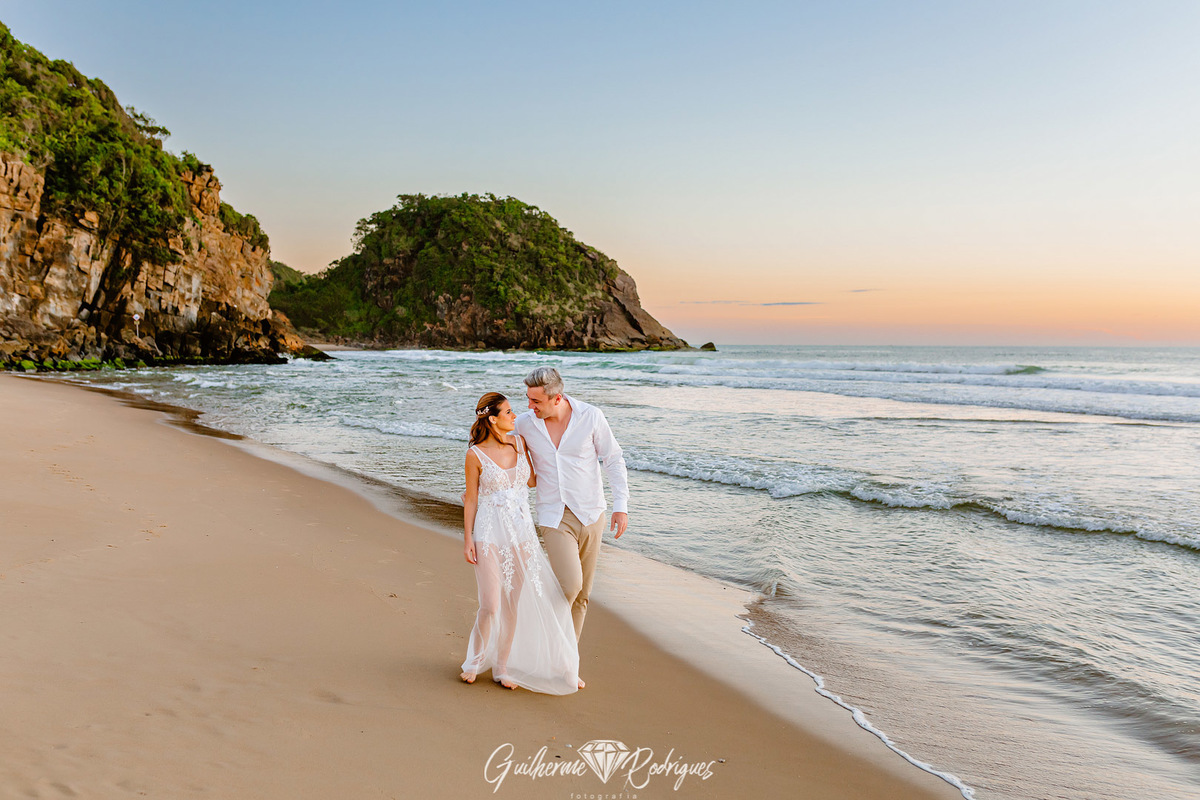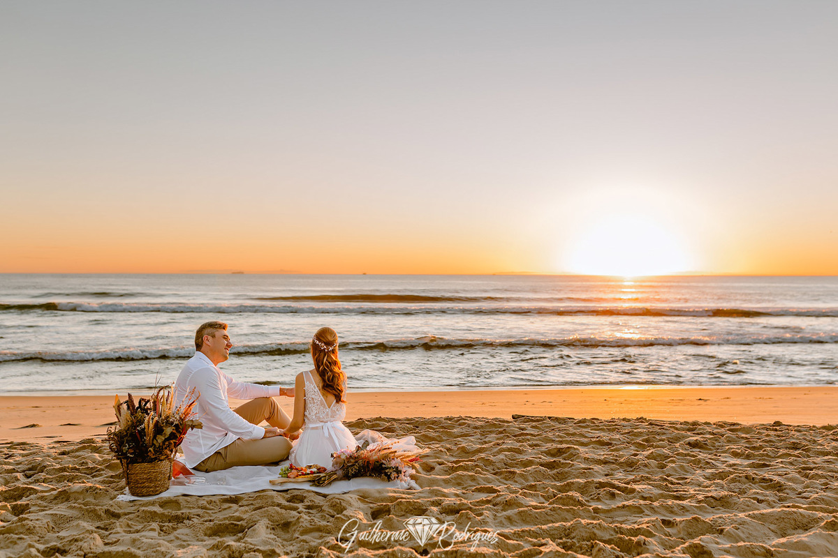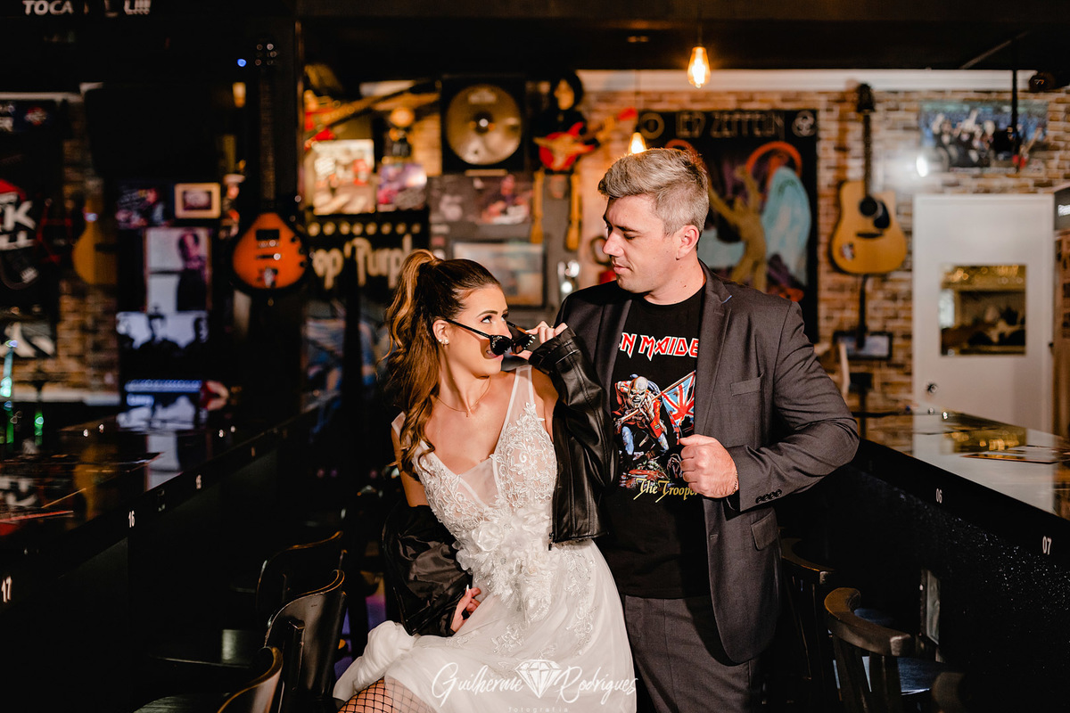 A Ketlin e o Taison escolheram fazer as fotos ao nascer do sol na Praia Brava, e vejam só que amanhecer incrível que fomos presenteados. E depois seguimos para o Confraria do Rock, um bar que eles gostam de frequentar, um estilo de música que curtem ouvir e que escolheram para finalizar as fotos do pré-casamento.