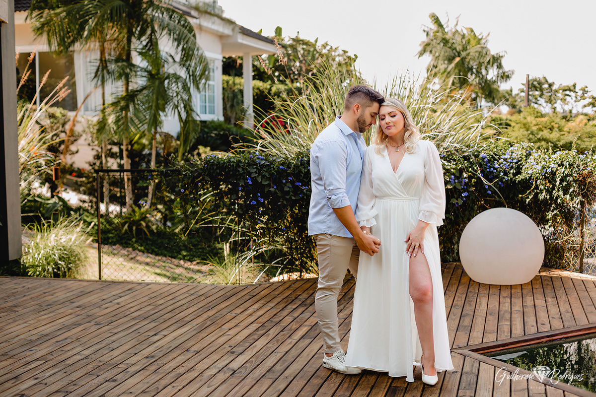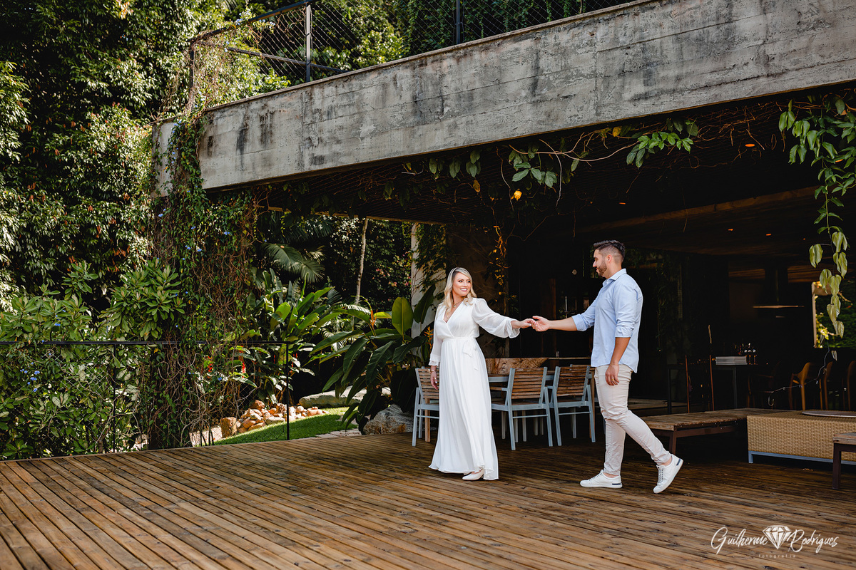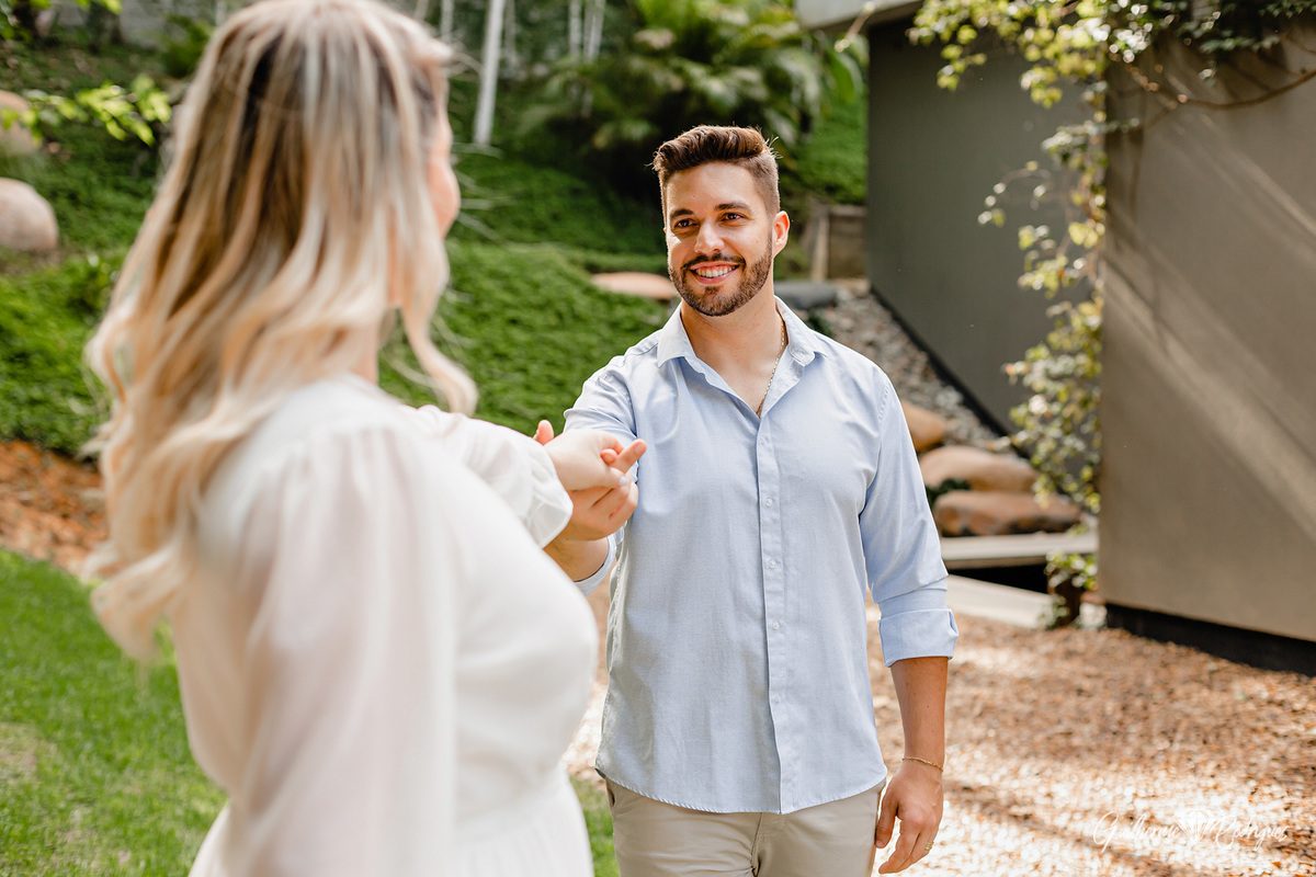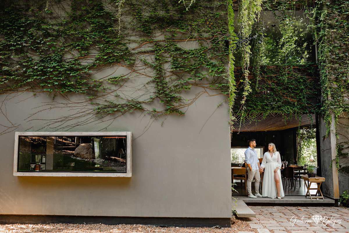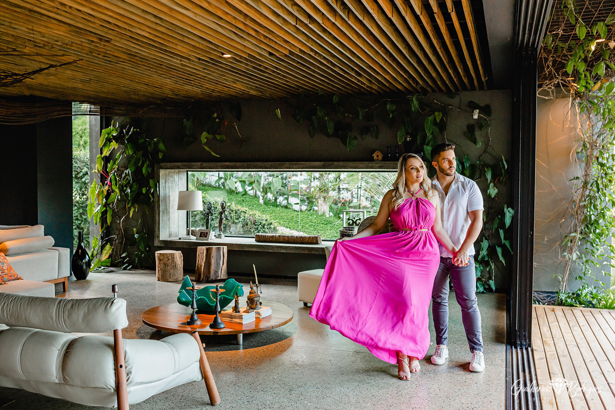 A Manu e o Will tem um escritório de engenharia e demonstrar isso de alguma forma no pré-casamento era importante para eles, e então começamos a procurar por lugares com uma arquitetura legal e aí apareceu no Instagram para a Giuli uma casa studio em Joinville, do jeito que eles queriam. O dia do pré-casamento é ter a identidade do casal nas fotos, que eles olhem as fotos e se reconheçam nelas.